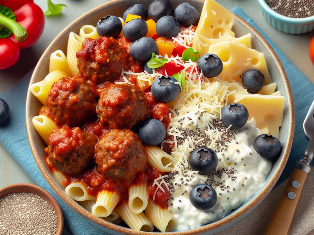 Macaroni aux Boulettes de Bœuf et Fromage Blanc aux Myrtilles