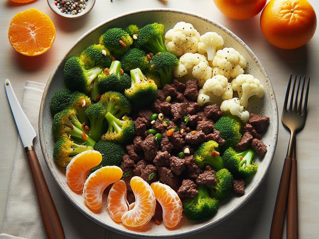 Ce plat est une combinaison savoureuse et nutritive qui allie la richesse du bœuf haché aux bienfaits des légumes crucifères comme le brocoli et le chou-fleur. Les clémentines ajoutent une touche de fraîcheur et de vitamine C, complétant parfaitement ce repas équilibré. C’est une option idéale pour un dîner sain et rassasiant, riche en protéines, fibres, vitamines et minéraux.