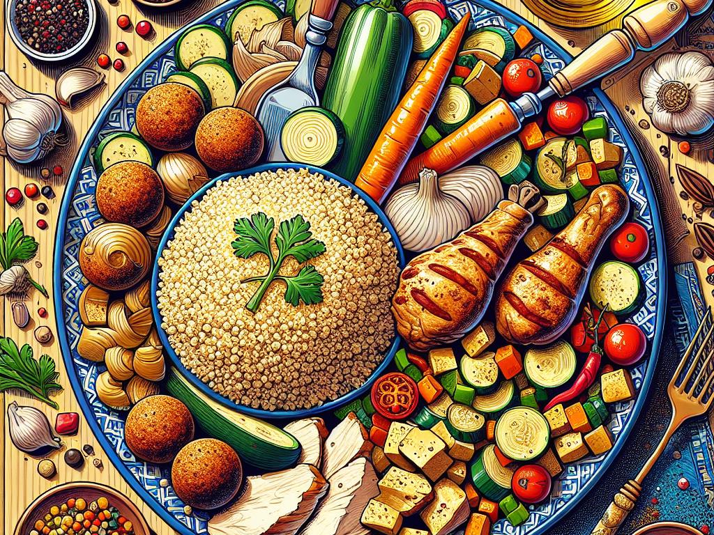 Ce plat de couscous est un véritable régal pour les papilles et une option équilibrée pour un déjeuner nutritif. En combinant des protéines maigres comme le poulet et des légumes riches en fibres, ce repas offre une belle harmonie de saveurs et de textures. La merguez et la boulette ajoutent une touche de gourmandise, tout en restant dans une approche modérée pour ne pas alourdir le plat. C’est une excellente manière de profiter d’un repas complet et satisfaisant.