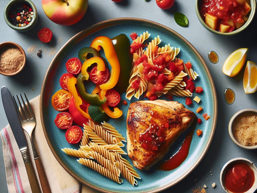 Ce plat savoureux et équilibré est une excellente option pour un déjeuner nutritif. La cuisse de poulet fournit des protéines essentielles, tandis que les poivrons et les oignons apportent une bonne dose de vitamines et de fibres. Le coulis de tomate ajoute une touche de fraîcheur et de douceur naturelle, et les pâtes complètes fournissent des glucides complexes pour l’énergie. Ce repas est complété par une compote de pomme sans sucre ajouté pour une touche sucrée saine.