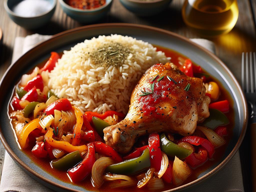 Ce plat savoureux et équilibré est parfait pour un déjeuner nutritif. La cuisse de poulet apporte une bonne source de protéines, tandis que les poivrons et les oignons ajoutent des vitamines et des fibres essentielles. Le riz basmati complète ce repas avec des glucides complexes, offrant une énergie durable. L’utilisation d’huile d’olive et de coulis de tomate enrichit le plat en saveurs tout en apportant des graisses saines et des antioxydants.