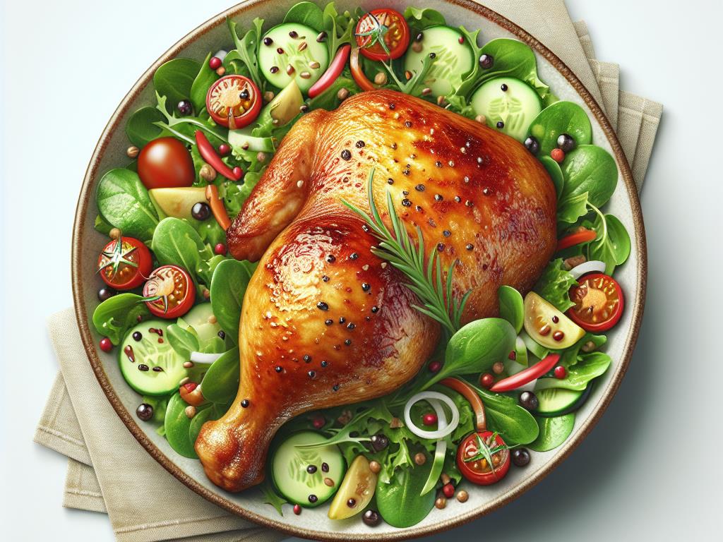 - Servez la cuisse de poulet accompagnée de la salade verte croquante.