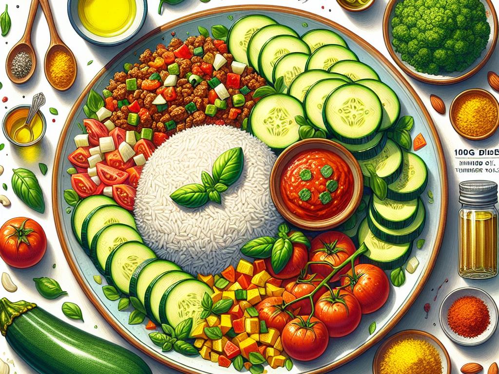 Ce plat savoureux et équilibré est une excellente option pour un déjeuner nutritif. Les courgettes et les tomates apportent une bonne dose de vitamines et de fibres, tandis que le riz blanc fournit des glucides pour l’énergie. La chair à saucisse ajoute une source de protéines, et les amandes offrent des graisses saines. Le curcuma et le basilic rehaussent les saveurs tout en apportant des bienfaits anti-inflammatoires et antioxydants. Ce repas est parfait pour ceux qui cherchent à allier plaisir et équilibre nutritionnel.