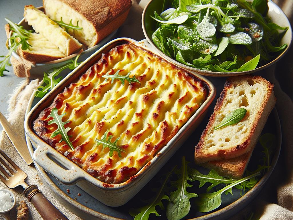 Home / Recettes / Dîners / Délice de Hachis Parmentier avec Salade Verte et Pain Complet