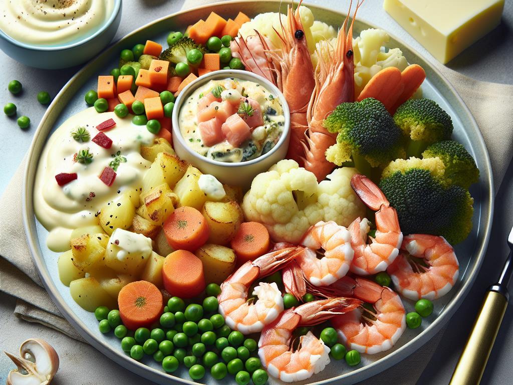 Ce plat est une combinaison savoureuse et équilibrée qui marie les bienfaits des légumes, des fruits de mer et des produits laitiers allégés. Le chou-fleur et les pommes de terre fournissent une bonne dose de fibres et de vitamines, tandis que le saumon fumé et les crevettes apportent des protéines de haute qualité et des acides gras oméga-3. La béchamel allégée et le fromage blanc vanille 0% ajoutent une touche crémeuse sans excès de calories. Ce repas est idéal pour ceux qui recherchent une alimentation saine et gourmande.