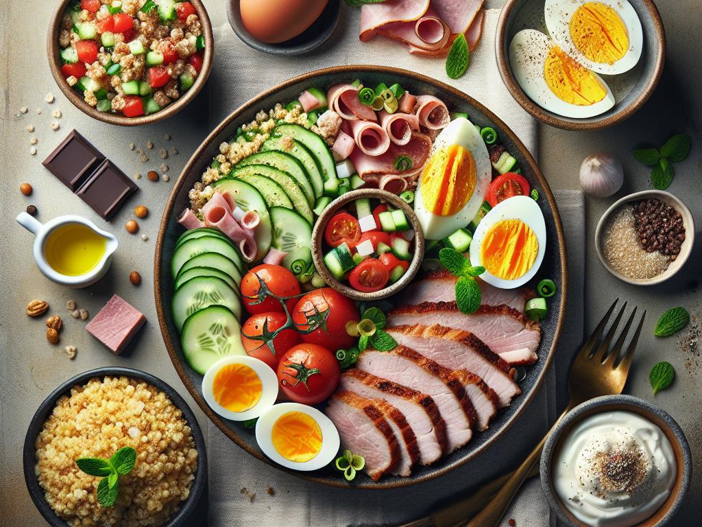 Ce plat est une combinaison savoureuse et équilibrée qui allie la richesse du porc et la fraîcheur du taboulé maison. Les tomates et les concombres apportent une touche de légèreté et de croquant, tandis que les œufs durs et la tranche de jambon ajoutent une dose supplémentaire de protéines. Le yaourt aux céréales et le carreau de chocolat noir complètent ce repas en offrant une touche sucrée et des fibres bénéfiques pour la digestion. Ce plat est idéal pour maintenir une alimentation équilibrée tout en se faisant plaisir.