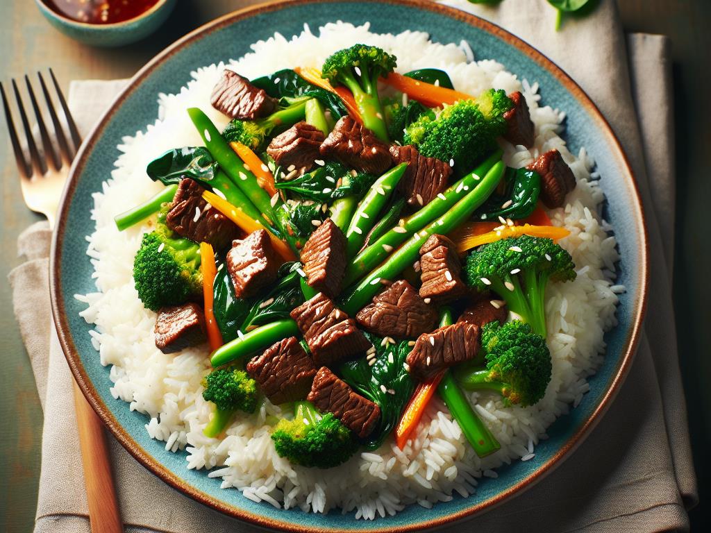 Ce plat est une combinaison savoureuse et équilibrée qui marie les bienfaits des protéines maigres, des glucides complexes et des fibres. Le riz basmati apporte une source d’énergie durable, tandis que les légumes verts fournissent des vitamines et des minéraux essentiels. Le bœuf sauté avec des oignons et de la sauce soja ajoute une touche de saveur umami, rendant ce repas non seulement nutritif mais aussi délicieux.