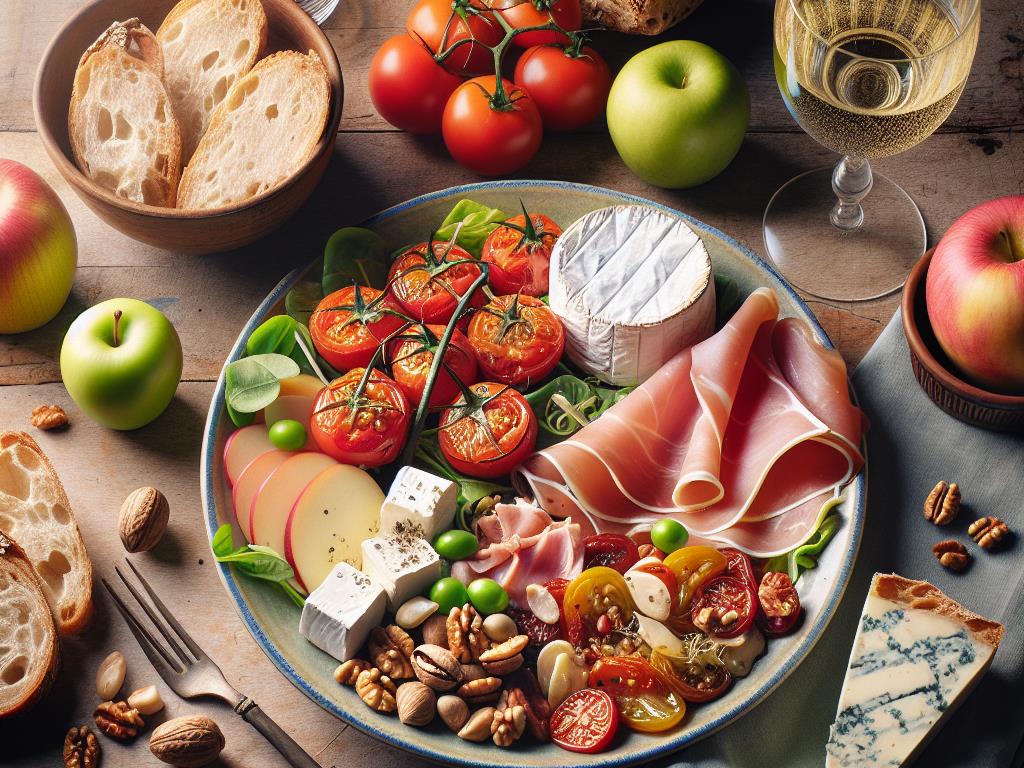 Ce plat équilibré est une combinaison savoureuse de saveurs provençales et de textures variées. La poêlée de tomates avec échalote et persillade apporte une touche méditerranéenne riche en antioxydants et vitamines, tandis que le jambon blanc fournit une source maigre de protéines. Le pain aux noix ajoute une dose de fibres et de bons acides gras, et le fromage de chèvre frais offre une onctuosité légère. Une pomme croquante pour le dessert et un expresso pour terminer en beauté complètent ce repas équilibré et nourrissant.