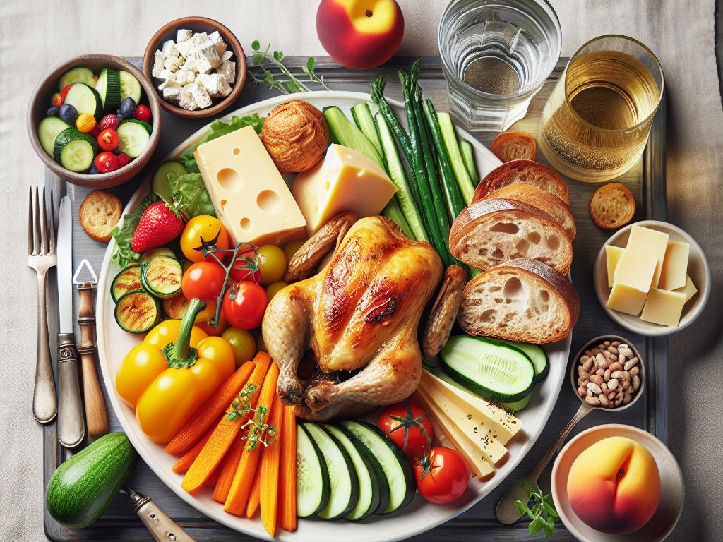 Ce plat est une combinaison savoureuse et équilibrée qui vous offre une variété de nutriments essentiels. Les légumes pour ratatouille apportent des fibres et des vitamines, le rôti de poulet fournit des protéines maigres, le pain complet est une excellente source de glucides complexes, et le fromage ajoute une touche de calcium et de saveur. La nectarine, en tant que dessert, offre une douceur naturelle et des antioxydants. Ce repas est parfait pour maintenir une alimentation saine et équilibrée tout en satisfaisant vos papilles.