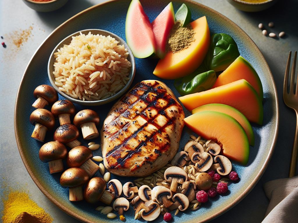 Ce plat est une combinaison savoureuse et équilibrée qui allie protéines maigres, glucides complexes et fibres. L’escalope de poulet fournit des protéines essentielles pour la construction musculaire, tandis que le riz est une excellente source d’énergie. Les champignons ajoutent des fibres et des antioxydants, et le melon apporte une touche de fraîcheur et de vitamines. La crème fraîche allégée et le curry offrent une saveur crémeuse et épicée sans excès de calories.