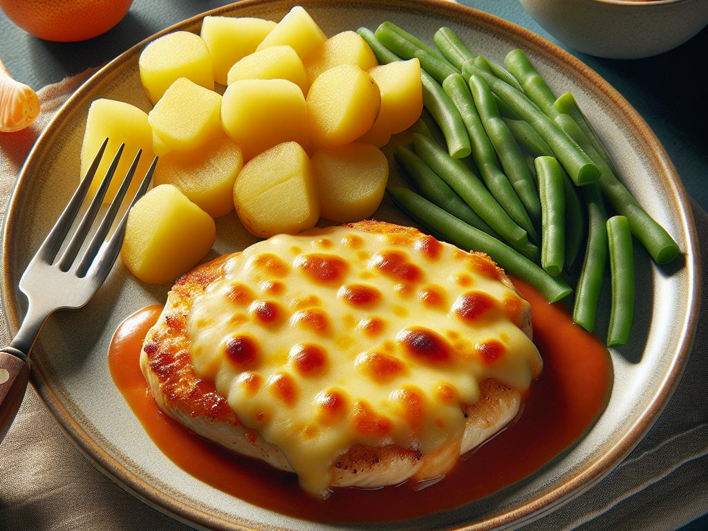 - Servez l’escalope gratinée avec les pommes de terre et les haricots verts. Terminez le repas avec les clémentines en dessert.