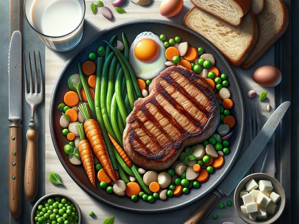 Ce plat est une excellente option pour un déjeuner équilibré. L’escalope de veau est une source maigre de protéines, essentielle pour la réparation et la croissance musculaire. La jardinière de légumes apporte une variété de vitamines et de minéraux, tandis que l’œuf au lait enrichit le repas en protéines et en calcium. Le pain complète le tout en fournissant des glucides complexes pour une énergie durable.