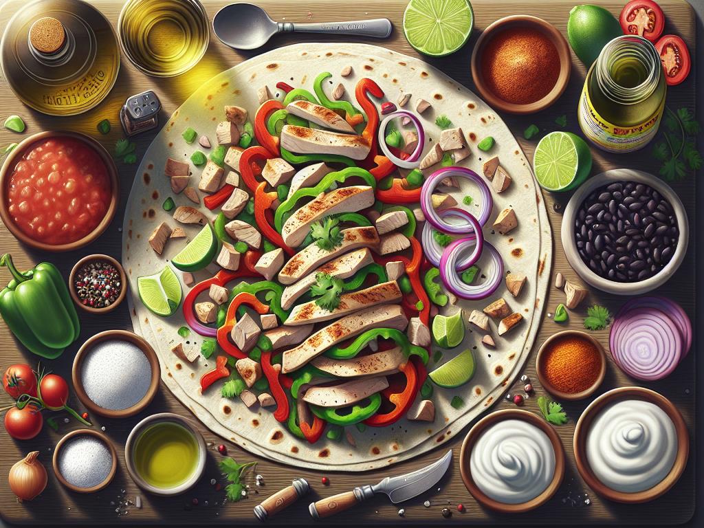 - Garnissez la tortilla avec le mélange de poulet et légumes. Ajoutez une cuillère de yaourt nature, un peu de coriandre hachée, et un filet de jus de citron vert.
