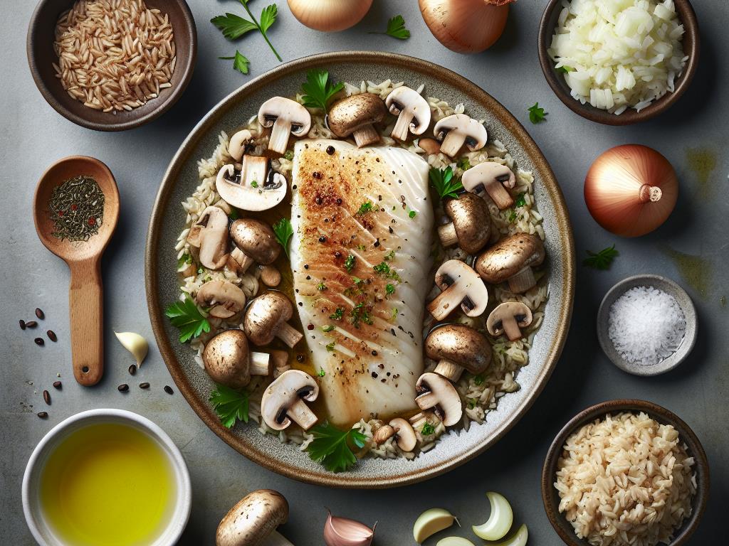 Ce plat de filet de cabillaud accompagné de riz complet, champignons et oignons est non seulement délicieux mais aussi riche en nutriments essentiels. Le cabillaud est une excellente source de protéines maigres et d’acides gras oméga-3, bénéfiques pour le cœur. Le riz complet apporte des fibres qui favorisent une bonne digestion, tandis que les champignons et les oignons ajoutent des antioxydants et des vitamines pour renforcer le système immunitaire.