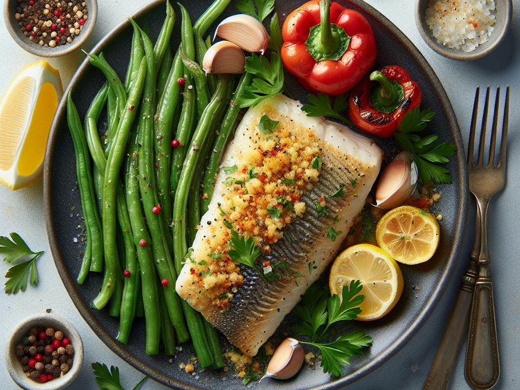 Ce plat est une excellente option pour un dîner équilibré et savoureux. Le colin est une source de protéines maigres, riches en oméga-3, bénéfiques pour la santé cardiaque. Les haricots plats et les poivrons apportent une bonne dose de fibres, de vitamines et de minéraux, complétant ainsi ce repas nutritif. La chapelure à l’ail et au persil ajoute une touche de saveur et de croustillant, rendant ce plat aussi délicieux que sain.