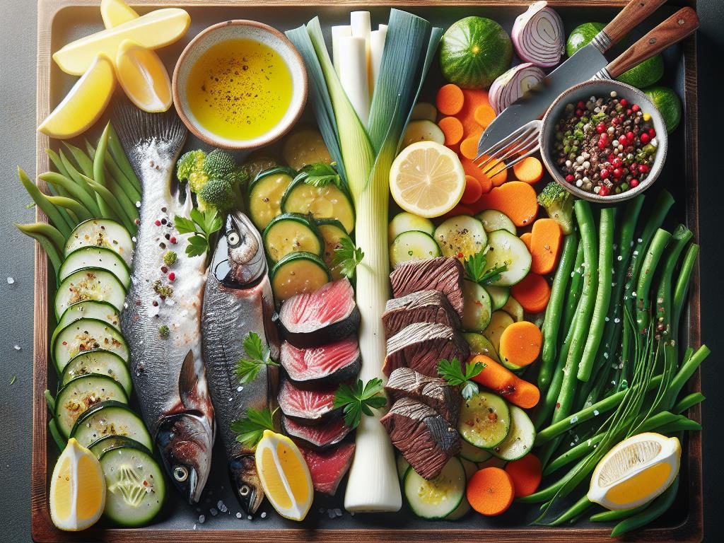 Ce plat est une merveilleuse combinaison de protéines maigres et de légumes, offrant un équilibre parfait entre saveurs et nutriments. Le mélange de dorade et de truite apporte des acides gras oméga-3 bénéfiques pour le cœur, tandis que le bœuf fournit du fer et des protéines. Les poireaux et autres légumes ajoutent des fibres et des vitamines essentielles, rendant ce repas non seulement délicieux mais aussi nutritif.
