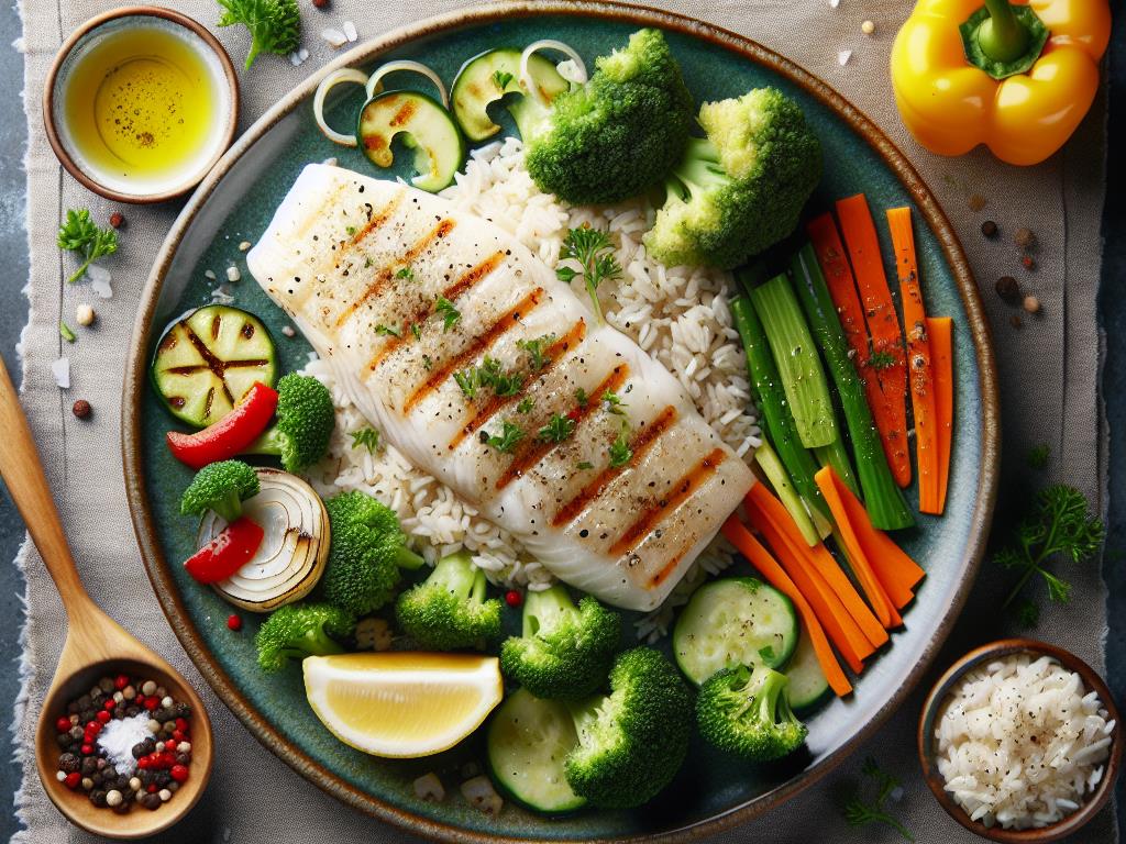 Ce plat de filet de poisson grillé avec riz et légumes variés est une option saine et équilibrée pour le dîner. Le poisson est une excellente source de protéines maigres et d’acides gras oméga-3, bénéfiques pour le cœur. Le riz fournit des glucides complexes pour l’énergie, tandis que les légumes apportent une variété de vitamines, minéraux et fibres essentiels pour une bonne digestion et une santé optimale.