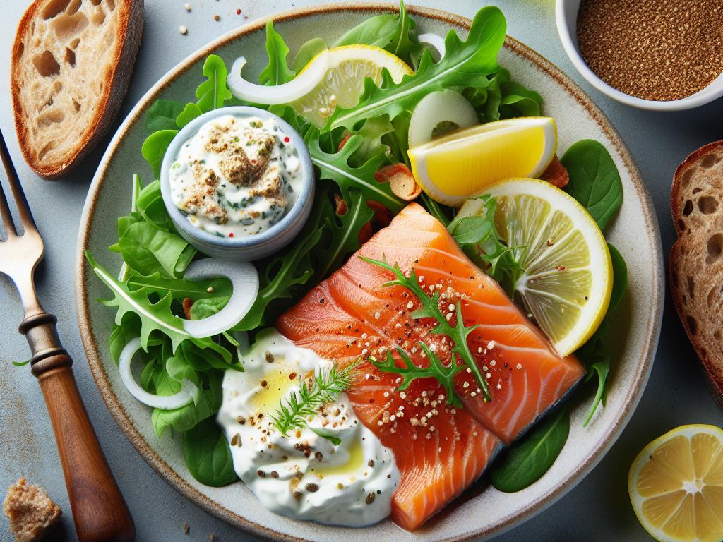 Ce plat de gravlax de saumon est non seulement délicieux mais aussi riche en nutriments essentiels. Le saumon est une excellente source d’oméga-3, qui sont bénéfiques pour la santé cardiaque. La salade verte apporte des fibres et des vitamines, tandis que la crème maison ajoute une touche de douceur sans excès de calories. Accompagné de pain complet, ce repas est équilibré et satisfaisant.