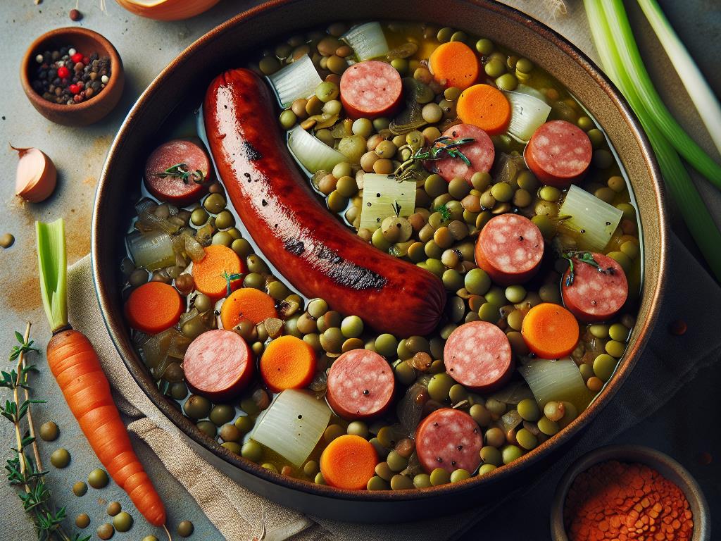 Les lentilles avec morceaux de saucisse constituent un plat réconfortant et nutritif, parfait pour un dîner équilibré. Les lentilles sont une excellente source de protéines végétales, de fibres, et de fer, tandis que la saucisse apporte une touche de saveur et de protéines animales. Ce plat est idéal pour maintenir un bon équilibre énergétique et favoriser une digestion saine.