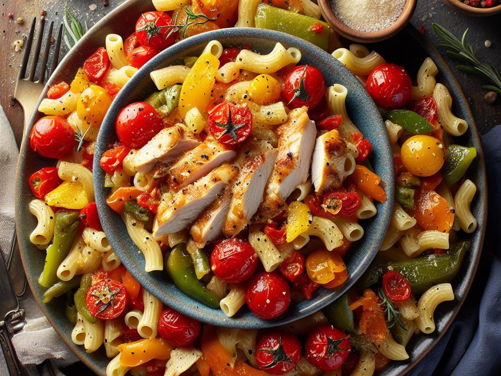 Ce plat de macaroni au poulet et légumes méditerranéens est une option équilibrée et savoureuse pour un déjeuner nourrissant. Riche en protéines grâce à l’escalope de poulet, il est également plein de fibres et de vitamines grâce aux poivrons et aux tomates cerises. L’huile d’olive apporte des graisses saines, tandis que le fromage ajoute une touche de calcium. C’est un repas complet qui vous apportera l’énergie nécessaire pour le reste de la journée.
