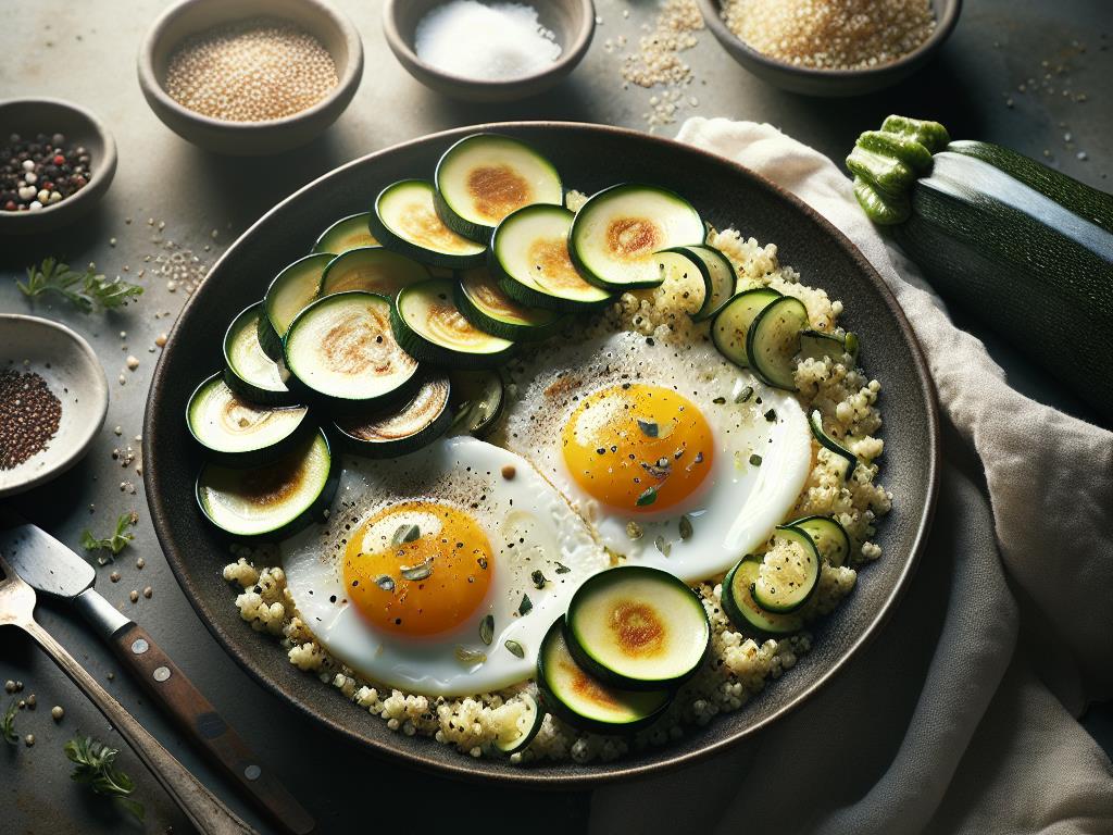 Ce plat est une excellente option pour un dîner équilibré et nutritif. Les œufs fournissent des protéines de haute qualité, essentielles pour la réparation et la croissance musculaire. Les courgettes, riches en fibres et en vitamines, ajoutent une touche de fraîcheur et de légèreté, tandis que le quinoa, une source complète de protéines végétales, offre une base rassasiante et nutritive. Ensemble, ces ingrédients créent un repas harmonieux qui soutient une alimentation saine et variée.