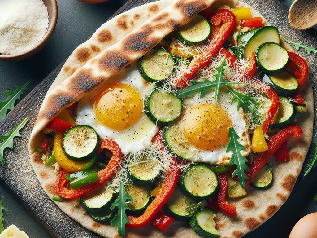 Pain Pita Végétarien aux Œufs, Parmesan et Légumes