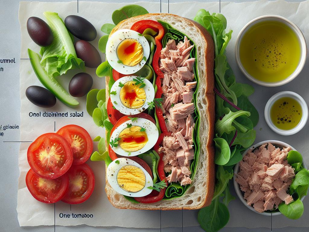 Ce Pan Bagnat apporte environ 450 calories. Il est riche en protéines (environ 30g), en fibres (environ 8g) et en bonnes graisses grâce à l’huile d’olive. C’est un repas équilibré qui contribue à une alimentation saine.