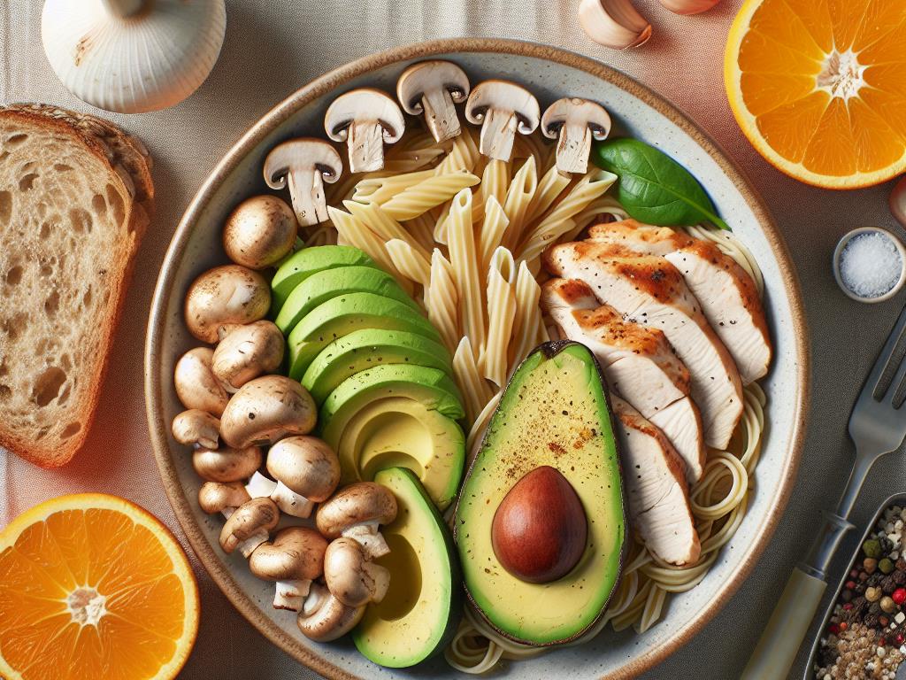 Pâtes au Poulet et Champignons avec Avocat et Orange