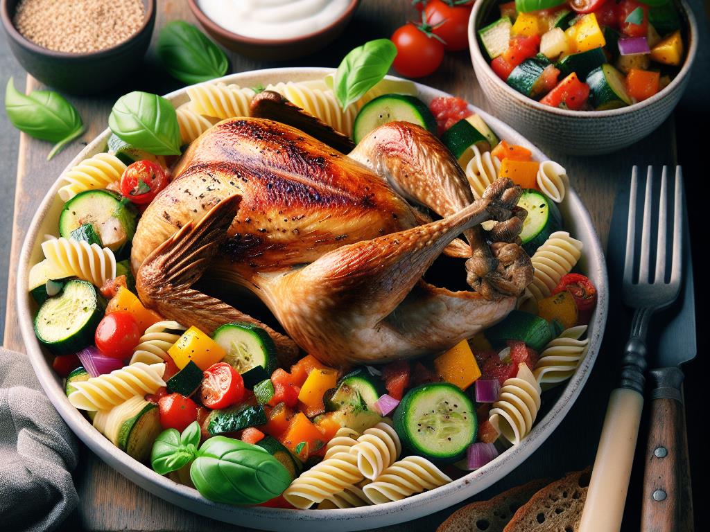 Pintade aux Pâtes et Ratatouille Méditerranéenne