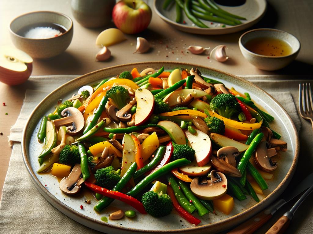 Cette poêlée de légumes sautés avec une touche de pomme croquante est un plat simple et délicieux qui combine des saveurs sucrées et salées. Riche en fibres, vitamines et minéraux, ce plat est parfait pour un dîner léger et équilibré. Les légumes fournissent une variété de nutriments essentiels, tandis que la pomme ajoute une douceur naturelle et une texture croquante.