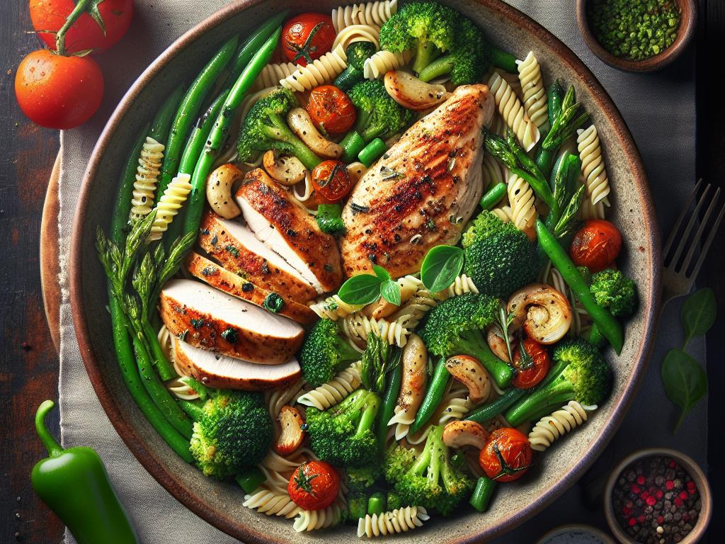 Poulet à la Provençale avec Pâtes et Légumes Verts