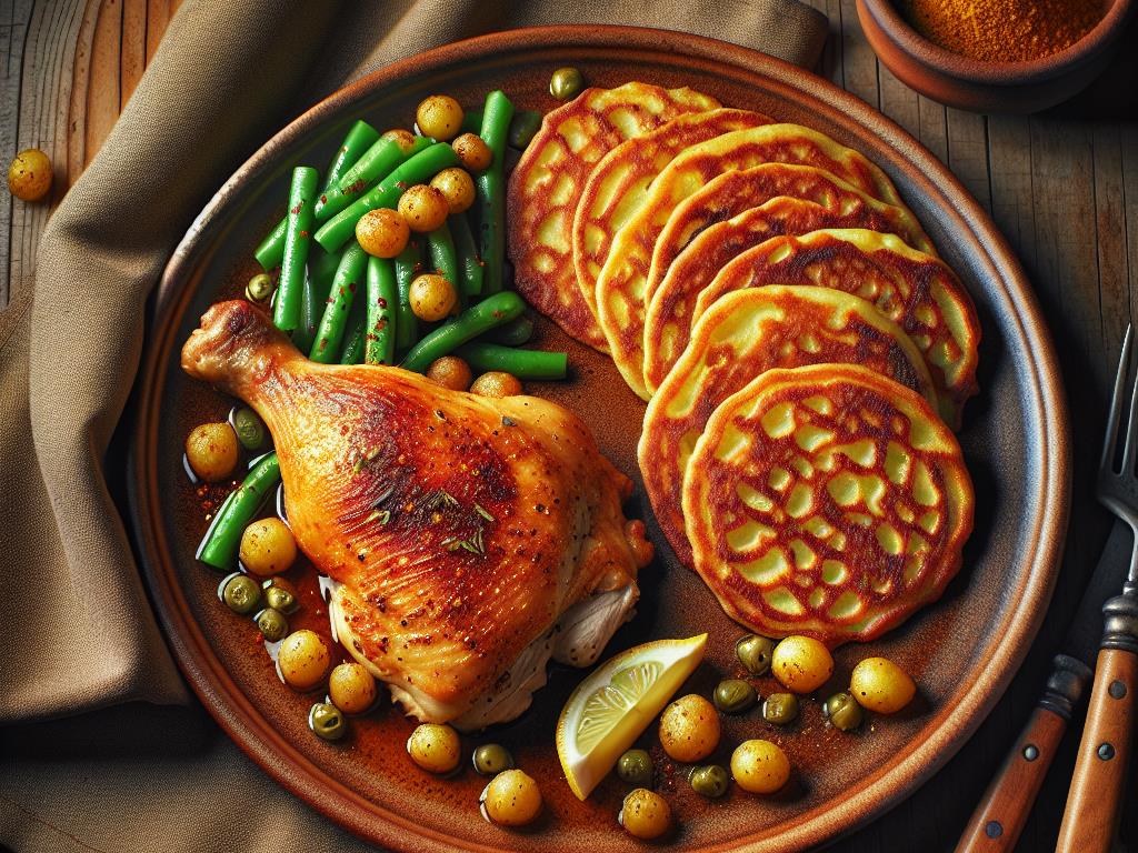 Le poulet rôti avec galettes de pommes de terre est un plat savoureux et équilibré qui combine des protéines maigres, des glucides complexes et des fibres. Le poulet rôti est une excellente source de protéines, essentielle pour la réparation et la croissance musculaire, tandis que les galettes de pommes de terre fournissent de l’énergie durable grâce à leur teneur en glucides. Ce plat est également riche en vitamines et minéraux, notamment en vitamine B6, en potassium et en fer, ce qui contribue à une alimentation saine et équilibrée.