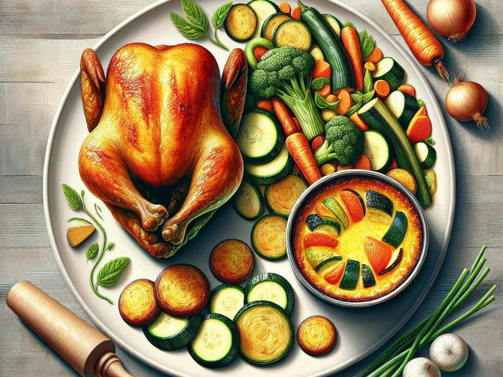 Ce plat est une combinaison délicieuse et équilibrée qui allie la tendreté du poulet rôti à la douceur du flan de légumes. Riche en protéines, fibres et vitamines, il constitue un repas complet qui soutient une alimentation saine. Le poulet apporte des protéines maigres essentielles pour le maintien de la masse musculaire, tandis que le flan de légumes est une excellente source de fibres et de micronutriments.