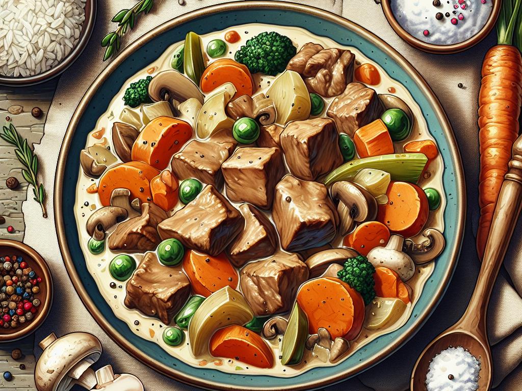 Ce ragoût de veau crémeux est un plat réconfortant et équilibré qui combine des protéines maigres, des glucides complexes et une variété de légumes. Le veau est une excellente source de protéines et de vitamines B, tandis que les carottes, les champignons et le céleri apportent des fibres, des vitamines et des minéraux essentiels. La sauce crémeuse, réalisée avec modération, ajoute une texture riche sans excès de calories.