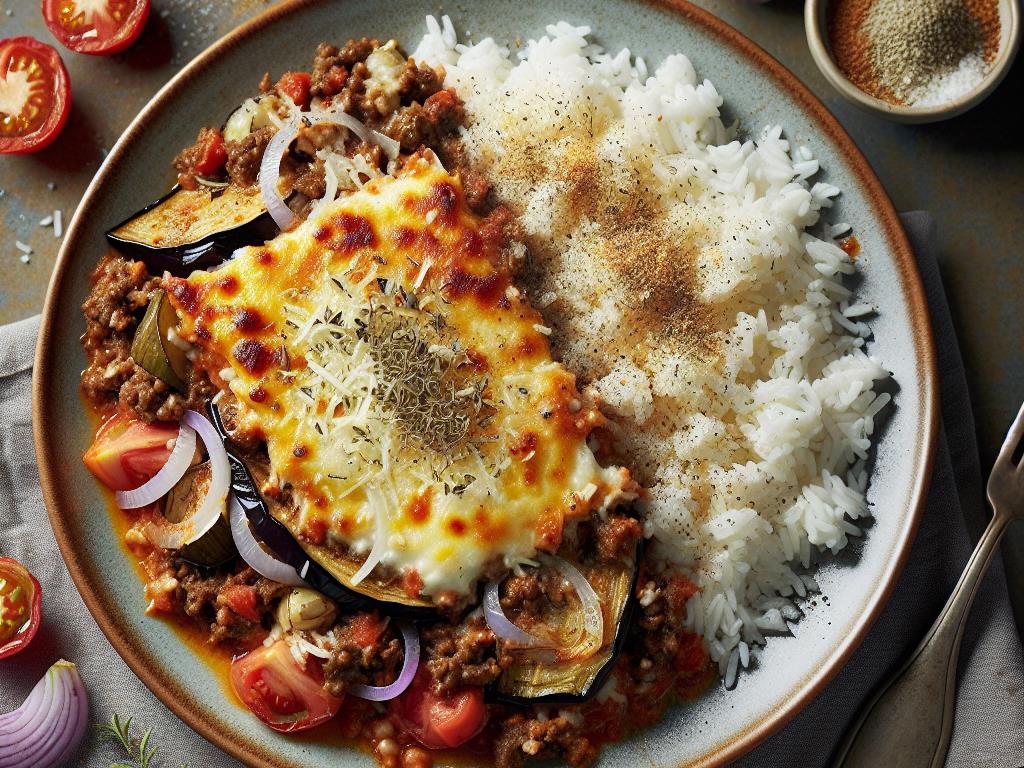 Ce plat de riz et moussaka avec viande de bœuf est une combinaison délicieuse et équilibrée qui allie les saveurs riches de la moussaka traditionnelle avec la simplicité du riz. Ce repas est non seulement satisfaisant, mais il est également riche en protéines, fibres, et glucides complexes, ce qui en fait un choix parfait pour un déjeuner nourrissant. Les aubergines apportent des antioxydants bénéfiques, tandis que le bœuf fournit des protéines de haute qualité et du fer, essentiel pour l’énergie et la vitalité.