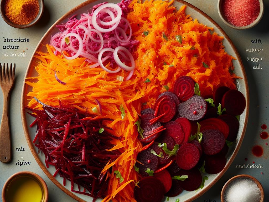 Cette salade croquante de carottes et betteraves est un plat coloré et nutritif qui apporte une belle variété de saveurs et de textures. Riche en fibres et en vitamines, elle est idéale pour un dîner léger et équilibré. Les carottes râpées apportent une douceur naturelle, tandis que les betteraves rouges ajoutent une touche terreuse et sucrée. Cette combinaison est non seulement savoureuse, mais aussi bénéfique pour la santé digestive et le système immunitaire.