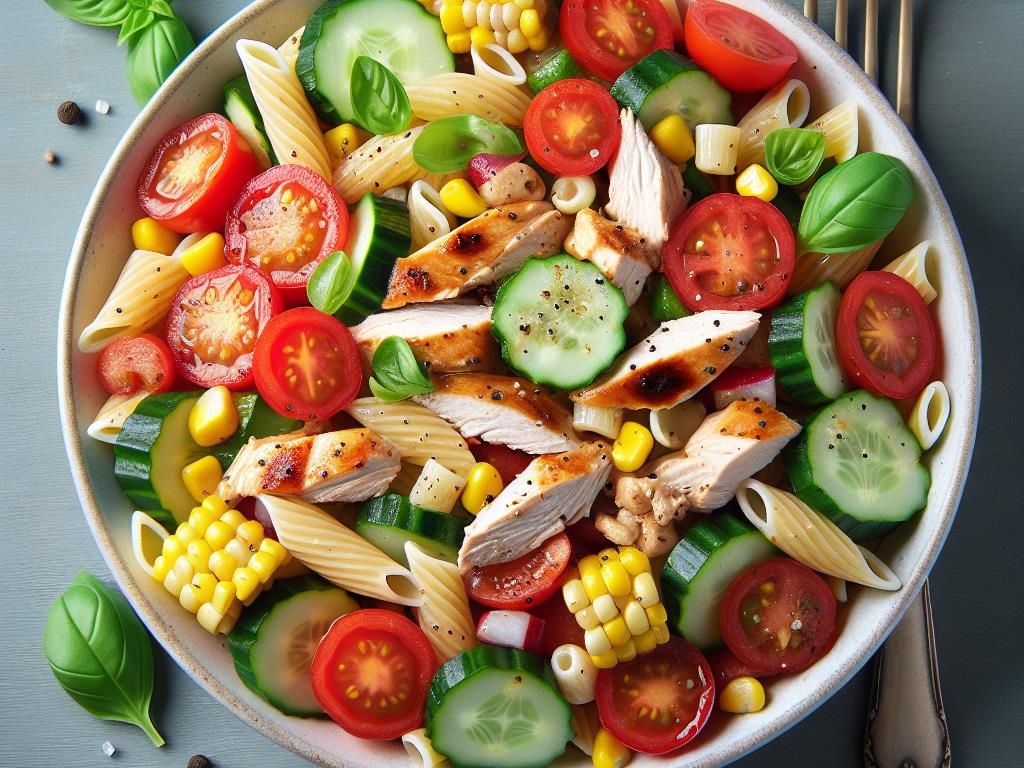 Salade de Pâtes au Poulet et Légumes Croquants