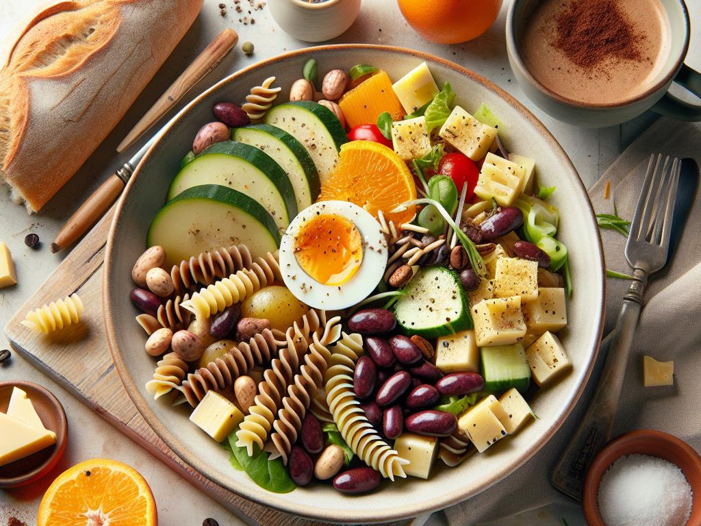 Cette salade de pâtes est un véritable concentré de saveurs et de nutriments. En associant des glucides complexes, des protéines et des fibres, ce plat vous apportera l’énergie nécessaire pour affronter votre journée. Les légumes ajoutent une touche de fraîcheur et de vitamines, tandis que le fromage et l’œuf dur complètent l’ensemble avec des protéines et du calcium. Parfait pour un déjeuner équilibré, ce plat saura ravir vos papilles tout en prenant soin de votre santé.