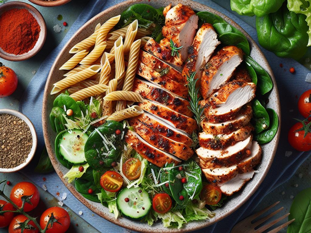 Ce plat est une combinaison parfaite de saveurs et de nutriments. La salade verte apporte une fraîcheur croquante et une bonne dose de fibres, tandis que le blanc de poulet rôti aux épices offre des protéines maigres essentielles pour la construction musculaire. Les pâtes, quant à elles, fournissent l’énergie nécessaire pour tenir toute la journée. C’est un repas équilibré qui satisfait à la fois le palais et les besoins nutritionnels.