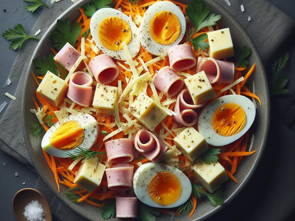 Salade Gourmande aux Carottes Râpées, Œuf Dur et Jambon