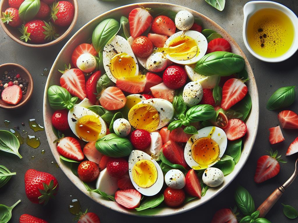 Cette salade printanière est un mélange rafraîchissant et équilibré qui marie la douceur des fraises avec la richesse des œufs durs et la saveur délicate de la mozzarella. Ce plat est non seulement savoureux, mais il est également riche en protéines, vitamines et antioxydants, ce qui en fait un choix idéal pour un dîner léger et nutritif.