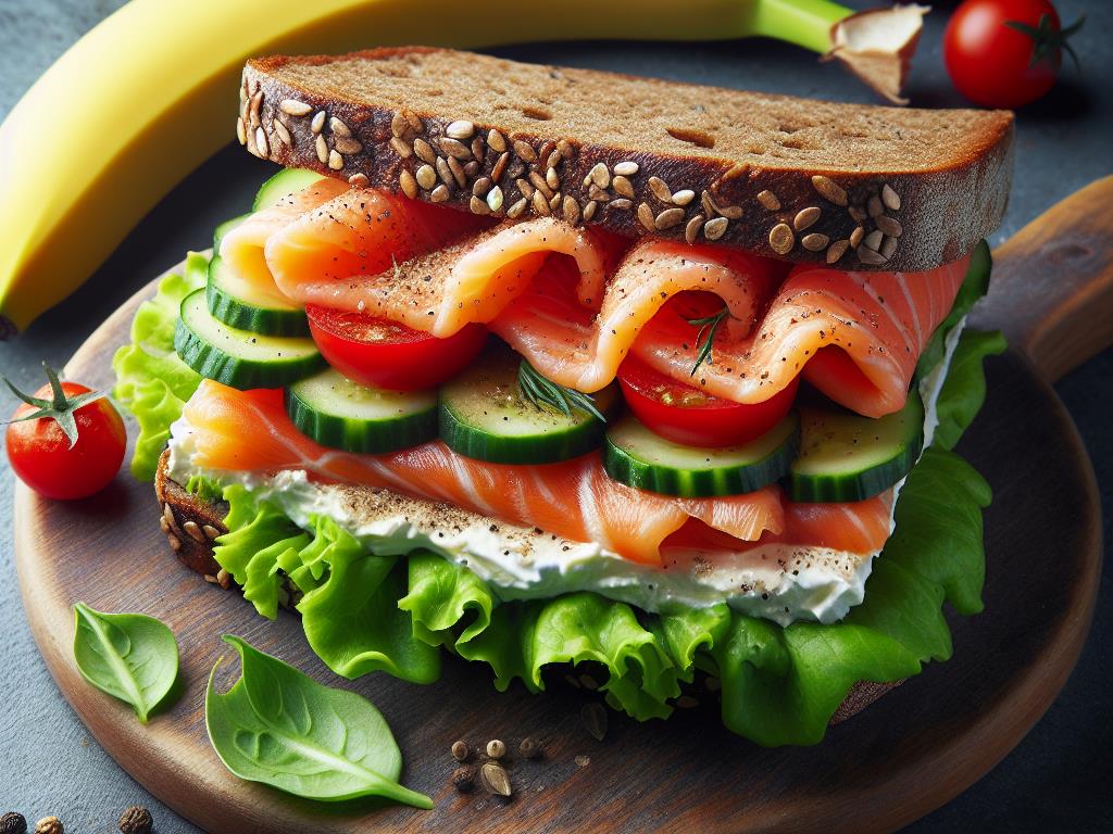 Le sandwich saumon crudité accompagné d’une banane est un choix savoureux et équilibré pour un déjeuner rapide et nutritif. Le saumon, riche en oméga-3, contribue à la santé cardiovasculaire et au bon fonctionnement du cerveau. Les crudités apportent des fibres et des vitamines essentielles, tandis que la banane est une excellente source d’énergie grâce à ses glucides naturels. Ce repas est idéal pour maintenir un bon niveau d’énergie tout au long de la journée.