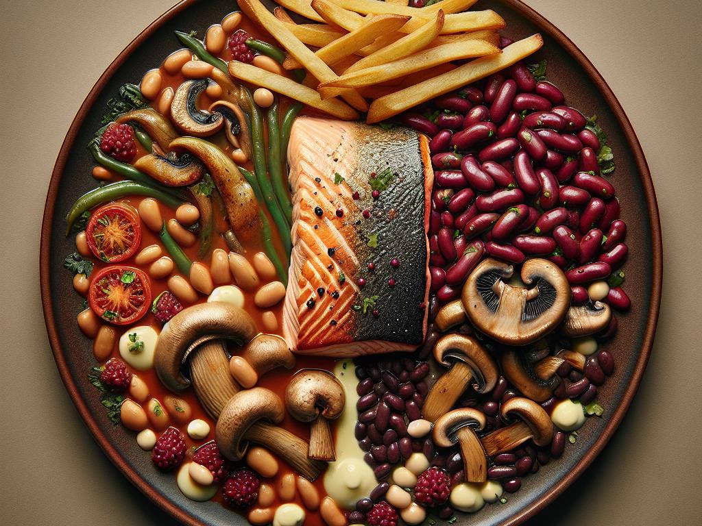 Saumon à la Sauce Vierge avec Haricots Rouges et Champignons