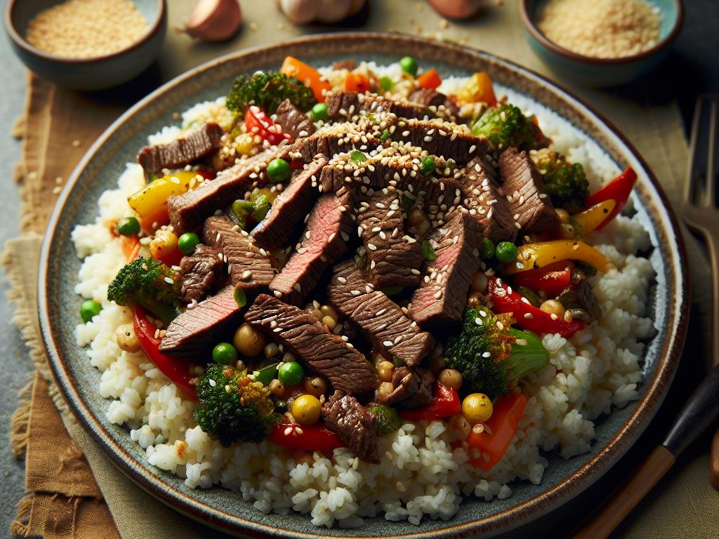 Ce plat est une option délicieuse et équilibrée qui combine des protéines maigres, des glucides complexes et une variété de légumes. Le bœuf sauté apporte des protéines essentielles pour la construction musculaire, tandis que le riz fournit l’énergie nécessaire pour la journée. Les légumes couscous ajoutent des fibres, des vitamines et des minéraux, contribuant à un repas complet et nutritif.