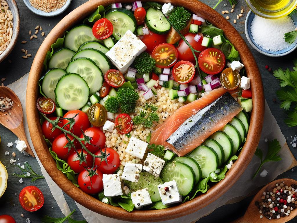 Ce taboulé est une explosion de saveurs et de textures, alliant la fraîcheur des légumes, la richesse de la truite fumée et le crémeux de la feta. C’est un plat équilibré qui offre une excellente source de protéines, de fibres et de vitamines. Parfait pour un déjeuner léger mais nourrissant, il vous apportera l’énergie nécessaire pour continuer votre journée.