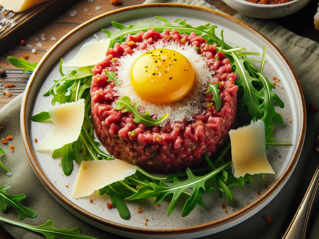 Home / Recettes / Déjeuners / Tartare de Bœuf Raffiné au Parmesan et Roquette
