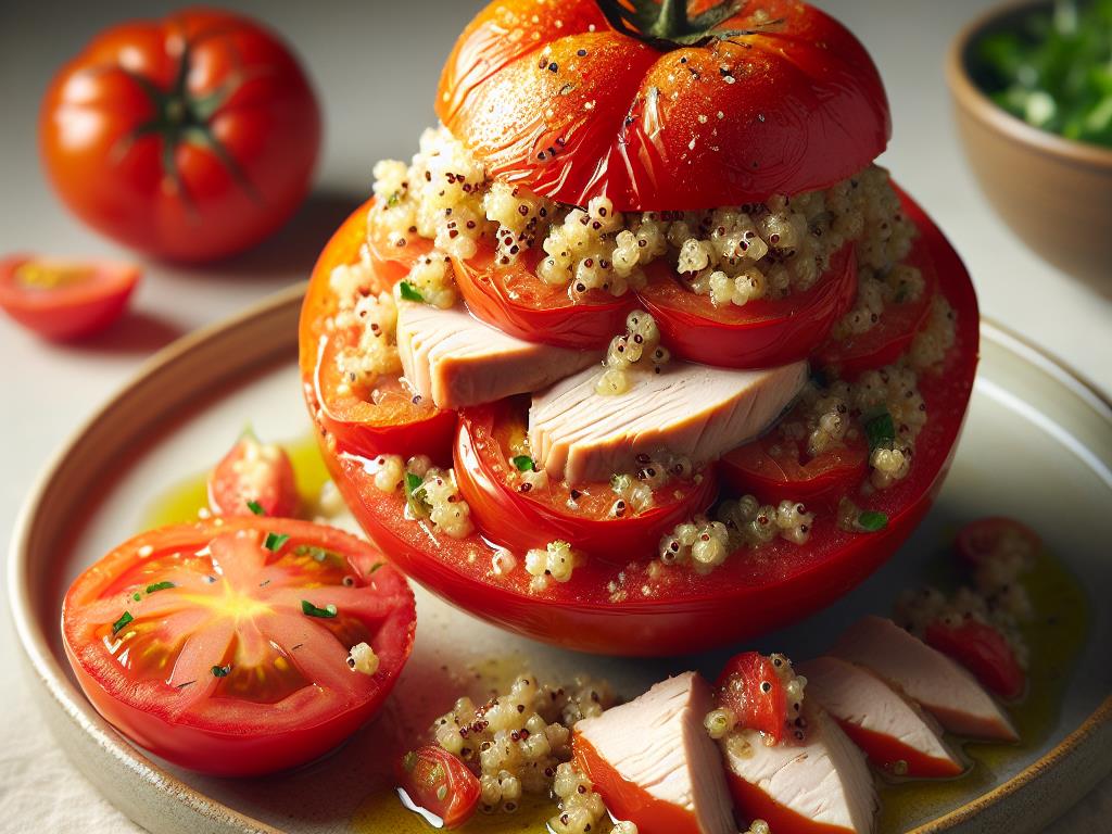 Ce plat de tomates farcies au quinoa et escalope de dinde est une option délicieuse et nutritive pour un dîner équilibré. Riche en protéines maigres grâce à la dinde, il est également une excellente source de fibres et de nutriments essentiels grâce au quinoa et aux légumes. Ce repas est parfait pour ceux qui cherchent à maintenir une alimentation saine tout en savourant un plat savoureux et réconfortant.